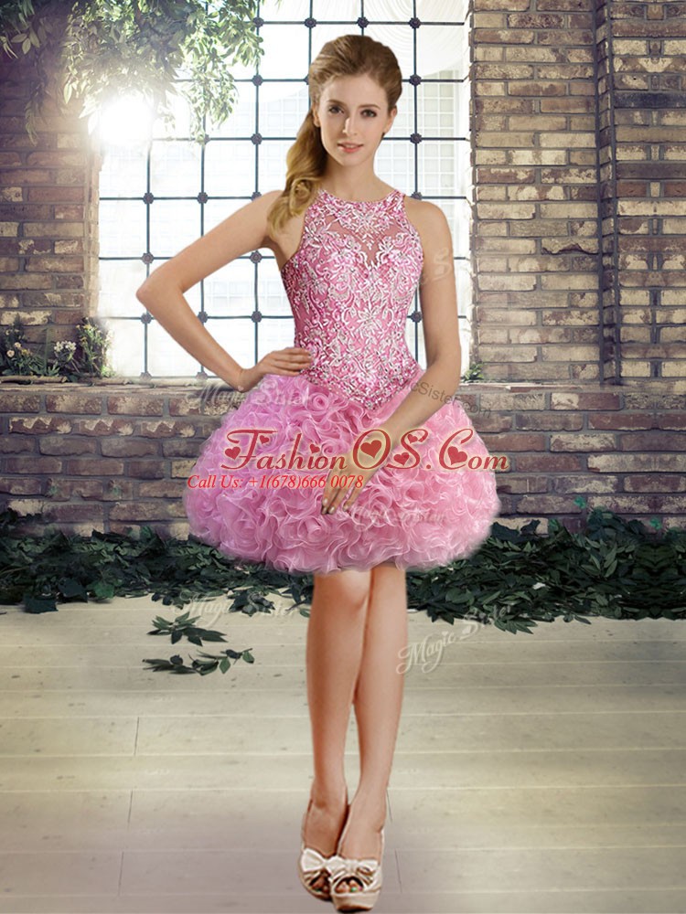 Fashion Sleeveless Fabric With Rolling Flowers Floor Length Lace Up Sweet 16 Quinceanera Dress in Rose Pink with Beading