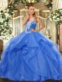 Fashion Sleeveless Floor Length Beading and Ruffles Lace Up Quinceanera Dress with Blue