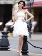 Fashion Sleeveless Knee Length Beading Zipper Evening Dress with White