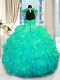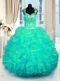 Fashion Straps Cap Sleeves Lace Up Quince Ball Gowns Turquoise Organza