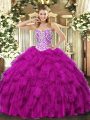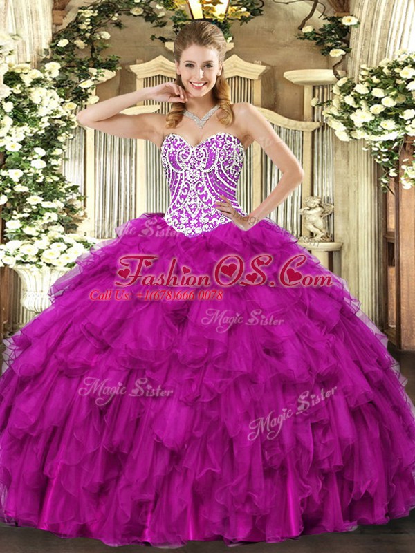Fashion Sweetheart Sleeveless Lace Up Quince Ball Gowns Fuchsia Tulle