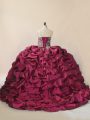 Fashion Taffeta and Tulle Sleeveless Sweet 16 Dress Brush Train and Beading and Pick Ups