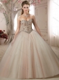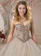 Fashion Trend Beaded Bodice Champagne Sweet Fifteen Dress with Sweep Train