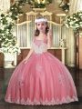 Fashion Watermelon Red Lace Up Straps Appliques Kids Pageant Dress Tulle Sleeveless