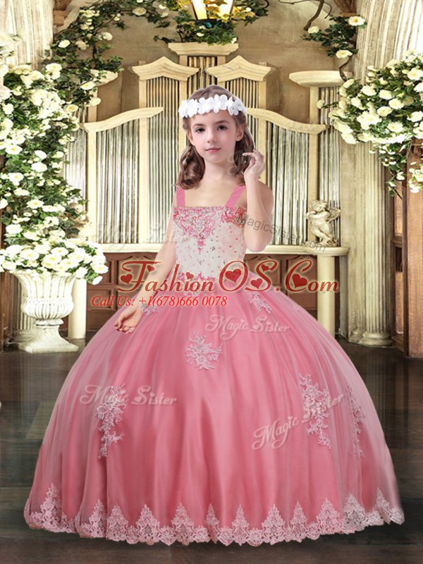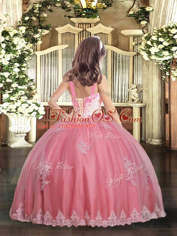 Home >  Special Occasion Dresses >  2019 Little Girl Pageant Dresses > Fashion Watermelon Red Lace Up Straps Appliques Kids Pageant Dress Tulle Sleeveless