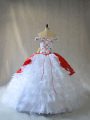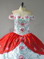 Fashion White And Red Lace Up Off The Shoulder Embroidery and Ruffled Layers 15 Quinceanera Dress Organza Sleeveless