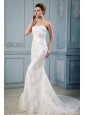 Fashionable 2013 Wedding Dress With Hand Made Flower and Lace Mermaid Court Train Taffeta