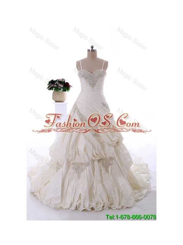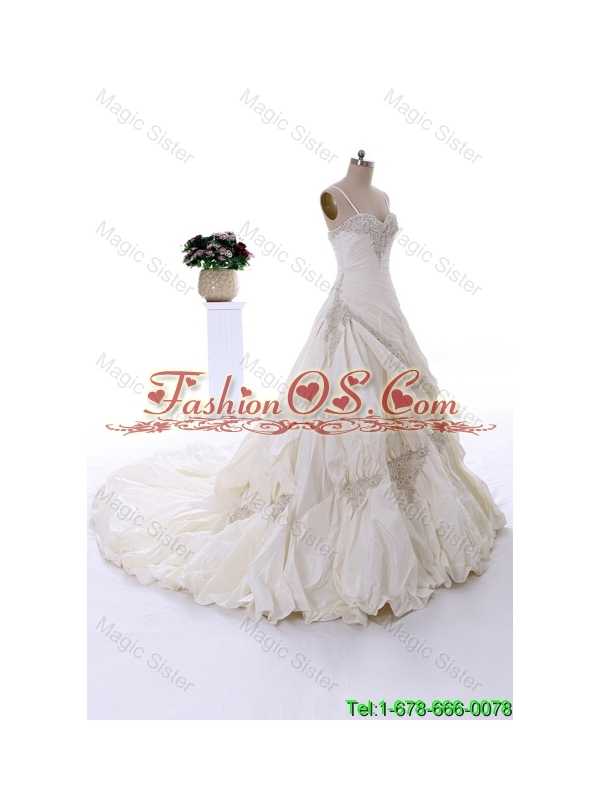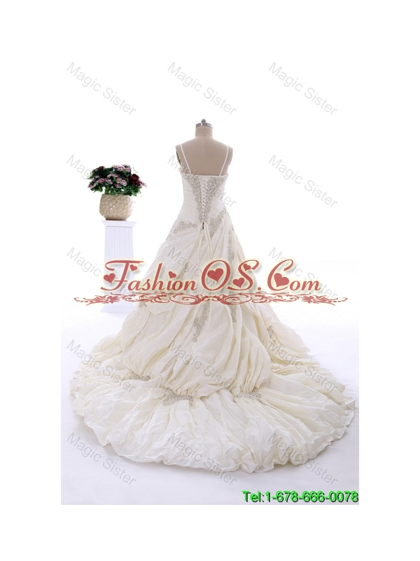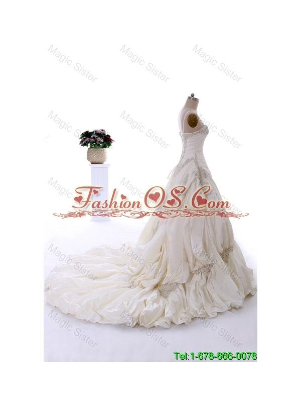 Fashionable 2016 Beading Wedding Dresses with Chapel Train
