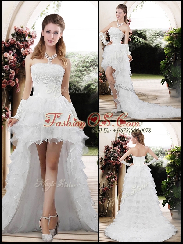Fashionable 2016 Strapless High Low Appliques Wedding Dresses