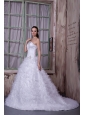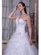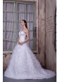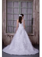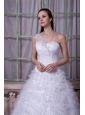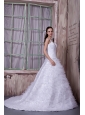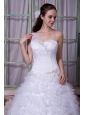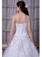 Fashionable A-line One Shoulder Wedding Dress Satin and Tulle Appliques Court Train