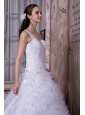 This elegant vintage-inspired dress is sure to please even the most picky fashionista. It is characterized by a glamorous bodice and a unique strap, which give the dress a now, modern look. It has attracted countless hearts of ladies and girls. The feathered skirt falls down to the ground in an elegant way. A beautiful dress for your wedding.