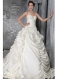 Fashionable A-Line / Princess Spaghetti Straps Cathedral Train Taffeta Beading Wedding Dress