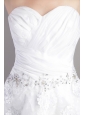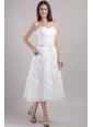 Are you longing to own a perfect dress for your wedding? This may be just the one you can't miss. It features a fabulous sweetheart neckline on the ruched bodice. Glimmering beading accent on the waist to give a better apperance .Exquisite appliqued lace adorned on the tea length skirt make this dress unique shaped.