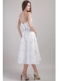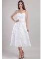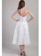 Fashionable A-line / Princess Sweetheart Tea-length White Appliques and Beading Wedding Dress