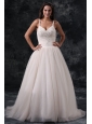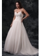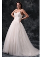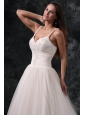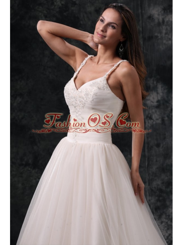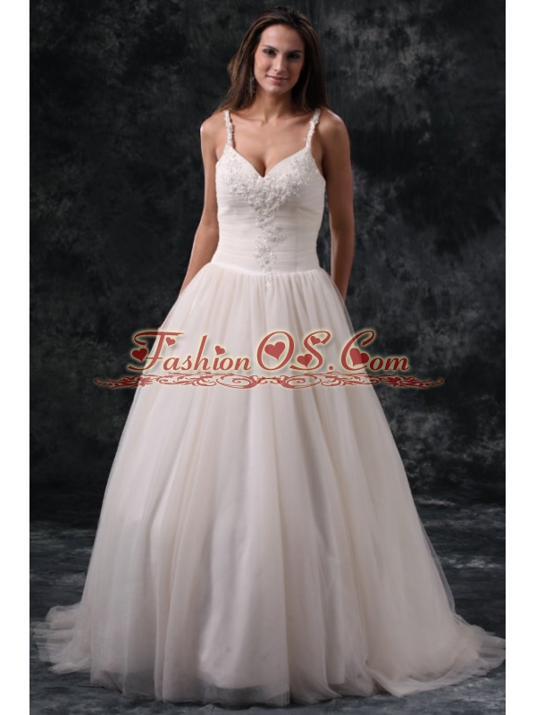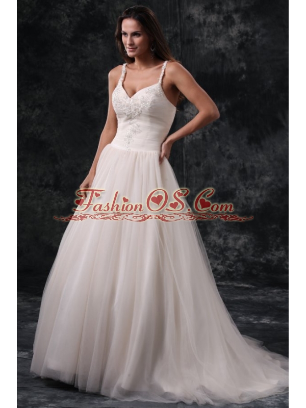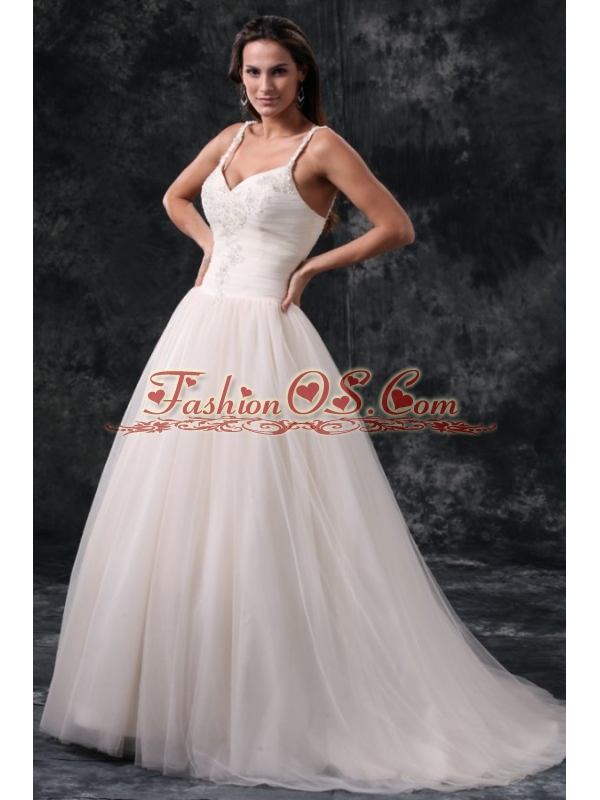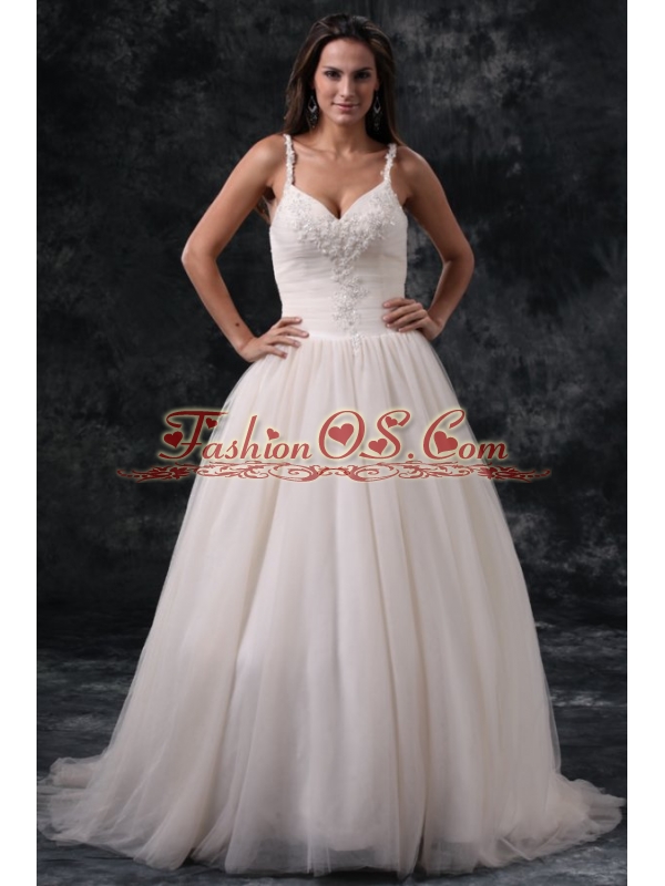 Home >  Wedding Dresses >  Perfect Wedding Dresses > Fashionable A-Line Straps Appliques Tulle Wedding Dress in Champagne
