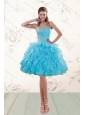 Fashionable Baby Blue Prom Gown with Beading and Ruffles