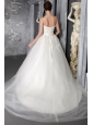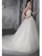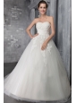 Home >  Wedding Dresses >  Affordable Wedding Dresses > Fashionable Ball Gown Strapless Chapel Train Tulle Appliques Wedding Dress