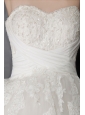 This angelic wedding dress features strapless with sweetheart neckline, it was accented with ruched and crossed waist, which makes the dress unique and catching. This elegent dress has a chapel train and lace up closure.