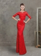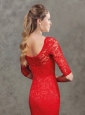 Fashionable Bateau Laced Red Evening Dress with Half Sleeves