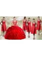 Home >  Quinceanera Dresses >  Quinceaneara Package > Fashionable Beaded and Pick Ups Quinceanera Dress and New Style Square Dama Dresses in Red