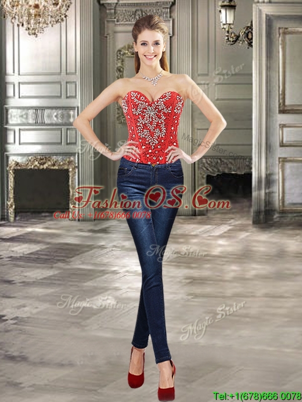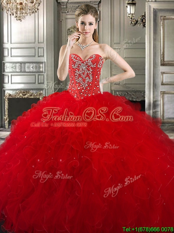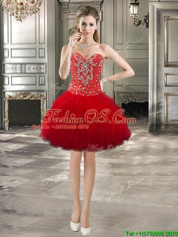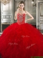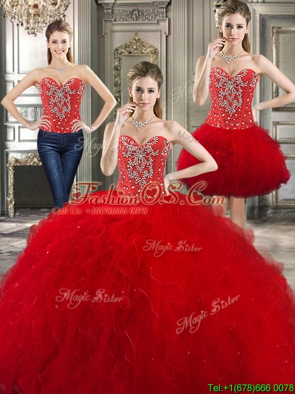 Fashionable Beaded and Ruffled Detachable Quinceanera Dresses in Red