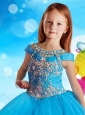 Fashionable Beaded Scoop Little Girl Pageant Dress with Cap Sleeves