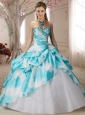 Home >  Quinceanera Dresses >  Perfect Quinceanera Dresses > Fashionable Beaded White and Blue Perfect Quinceanera Dresses in Printed and Tulle