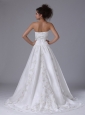 A special day calls for a special dress and this one is sure to suffice. The strapless sweetheart bodice is accented with ruches and flaring beadings. The spaghetti straps add the charm of the dress. The A-line skirt is fabulous and grace, thanks to many appliques beneath that give it its wonderful shape. The zipper in the back of the dress secures it in place and makes for easy off and on. You will have a memorable wedding ceremony.