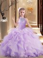 Fashionable Beading and Ruffles Little Girls Pageant Dress Lavender Lace Up Sleeveless Floor Length