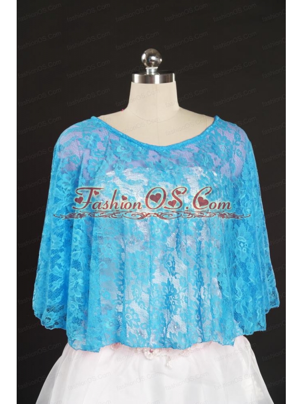 Home >  Accessories >  Wraps > Fashionable Beading Lace Wraps in Aqua Blue