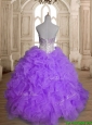 Fashionable Big Puffy Beading and Ruffles Quinceanera Dress in Purple