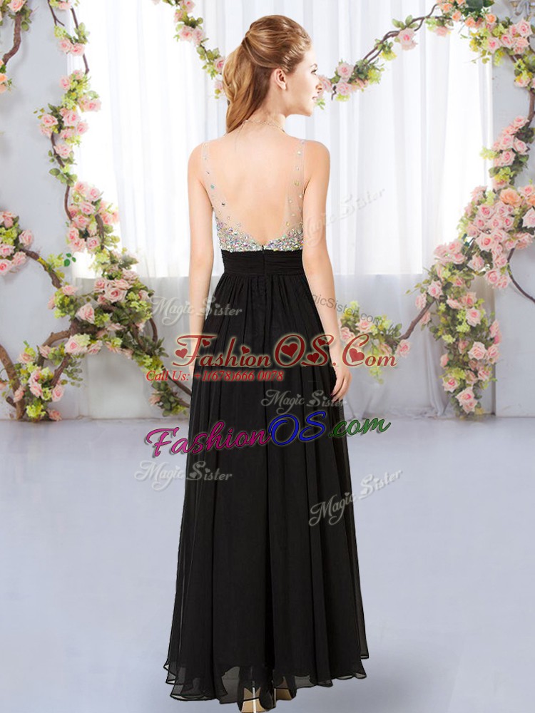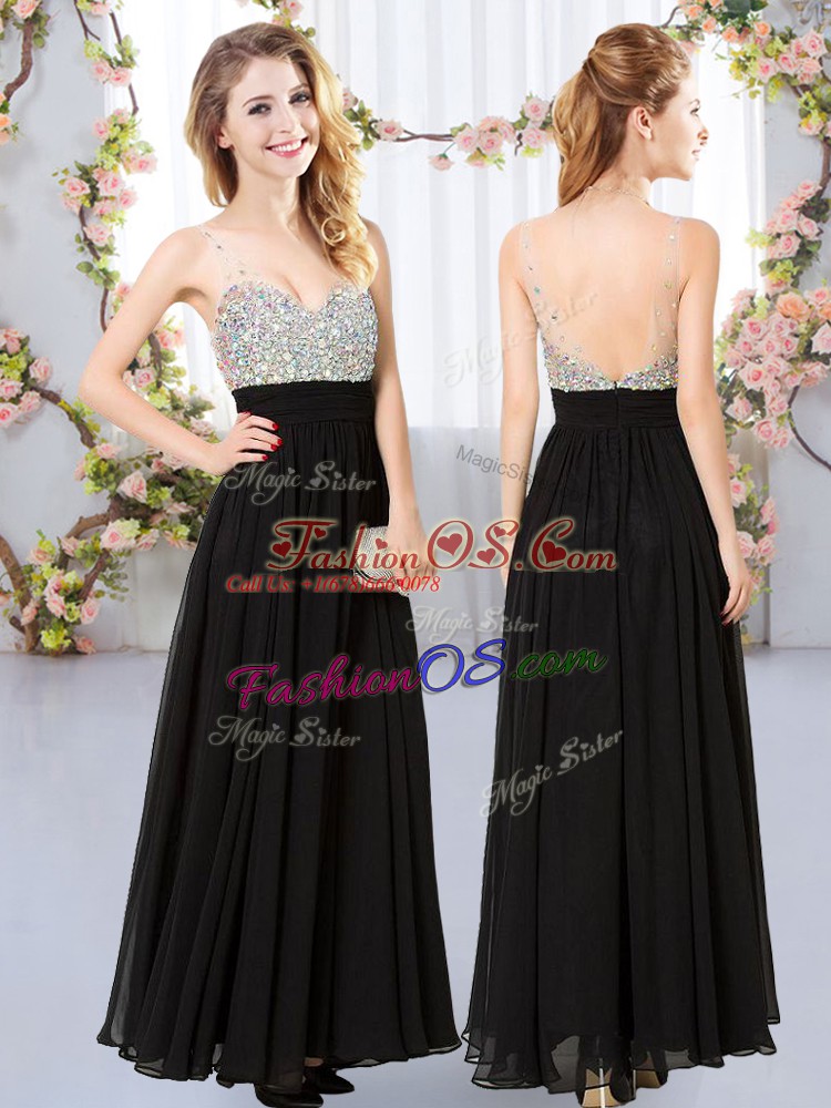 Home >  Bridesmaid Dresses >  Cheap Bridesmaid Dresses > Fashionable Black Empire Chiffon V-neck Sleeveless Beading Floor Length Backless Wedding Party Dress