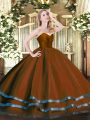 Fashionable Brown Sweetheart Zipper Ruffled Layers Quince Ball Gowns Sleeveless