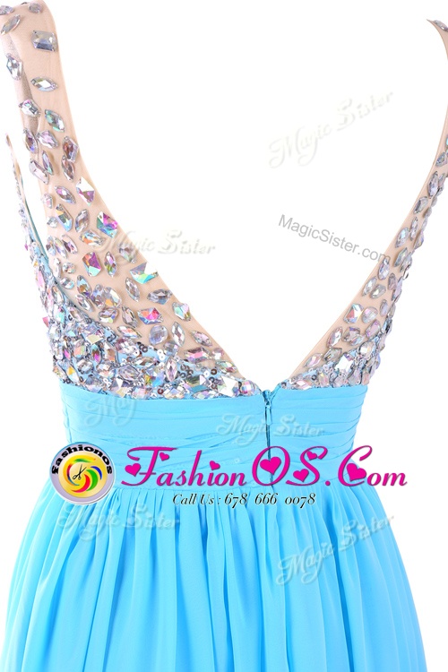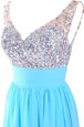 Fashionable Champagne Sleeveless Appliques Knee Length Prom Evening Gown