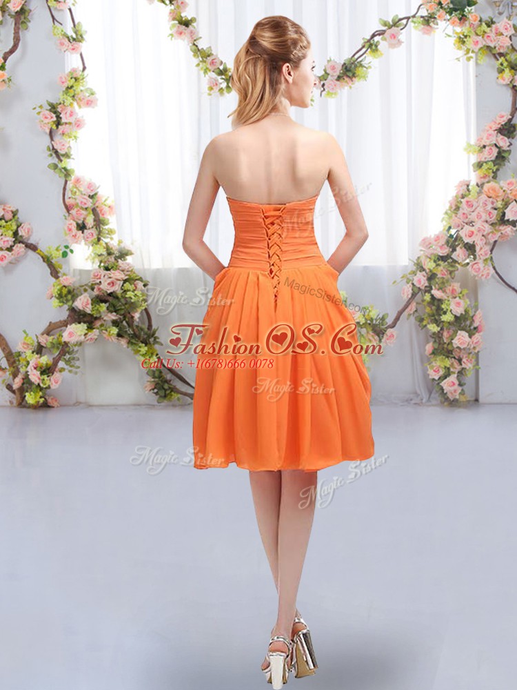 Fashionable Chiffon Lace Up Quinceanera Court Dresses Sleeveless Knee Length Ruffles and Ruching