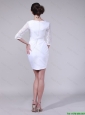 Fashionable Column Bateau Laced Half Sleeves Prom Dresses in White
