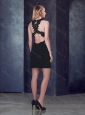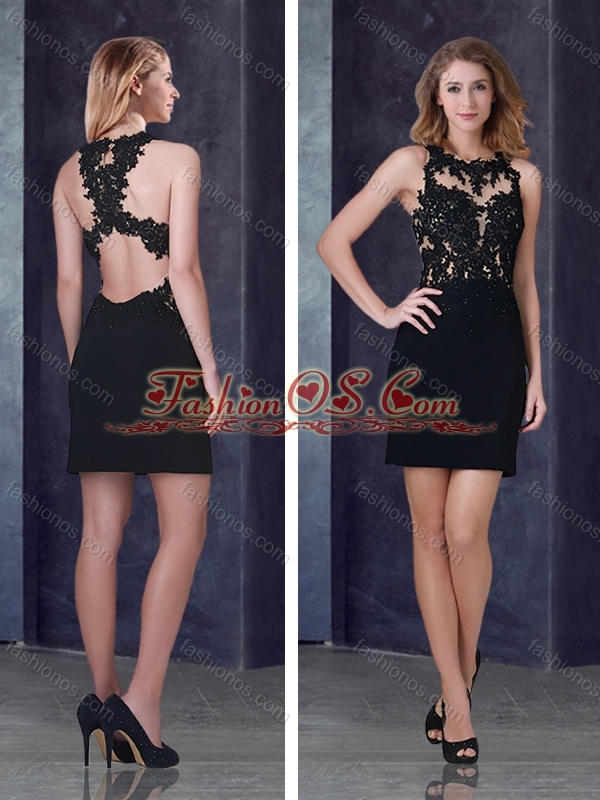 Home >  Special Occasion Dresses >  Cocktail Dresses > Fashionable Column Bateau Satin and Laced Prom Dress in Black
