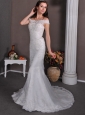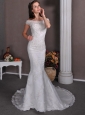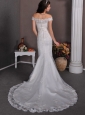 Home >  Wedding Dresses >  Latest Wedding Dresses > Fashionable Column Off The Shoulder Wedding Dress Brush Train Taffeta and Lace