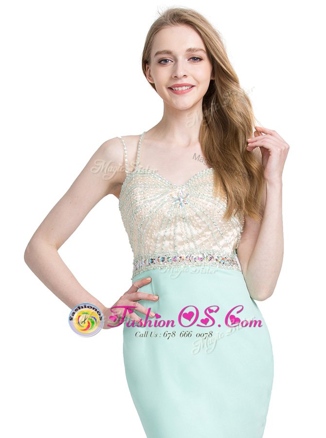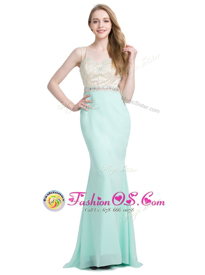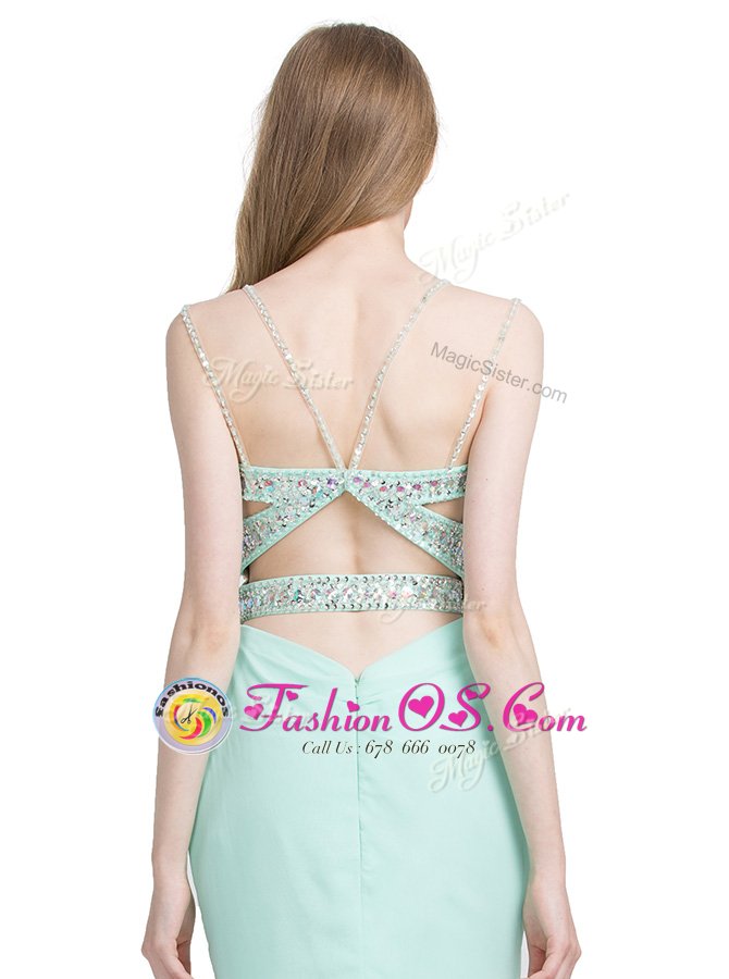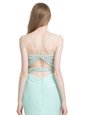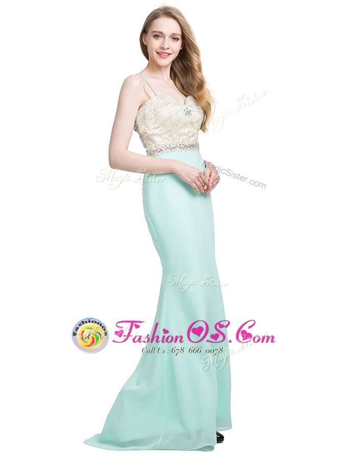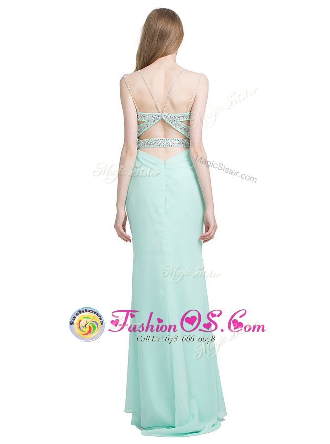 Home >  Prom Dresses >  Perfect Prom Dresses > Fashionable Criss Cross Apple Green Sleeveless Brush Train Beading With Train Prom Evening Gown