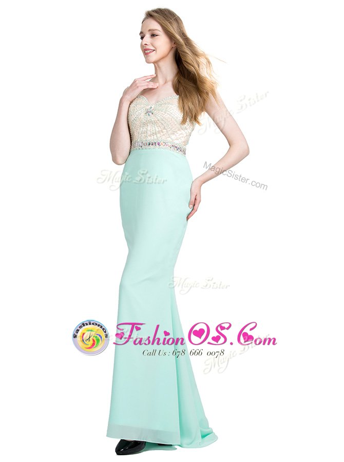 Fashionable Criss Cross Apple Green Sleeveless Brush Train Beading With Train Prom Evening Gown