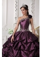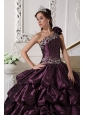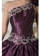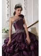 Home >  Quinceanera Dresses >  Perfect Quinceanera Dresses > Fashionable Dark Purple Quinceanera Dress One Shoulder Taffeta Appliques and Pick-ups Ball Gown