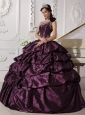 Fashionable Dark Purple Quinceanera Dress One Shoulder Taffeta Appliques and Pick-ups Ball Gown