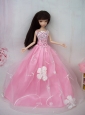 Fashionable Embroidery Pink Princess Quinceanera Doll Dress