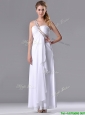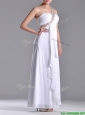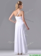 Fashionable Empire One Shoulder Chiffon Side Zipper White Bridesmaid Dress with Beading