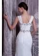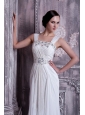 Fashionable Empire Straps Wedding Dress Beading Chiffon Brush Train