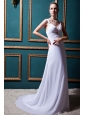 Home >  Wedding Dresses >  Beach Wedding Dresses > Fashionable Empire V-neck Brush Train Chiffon Beading Beach Wedding Dress