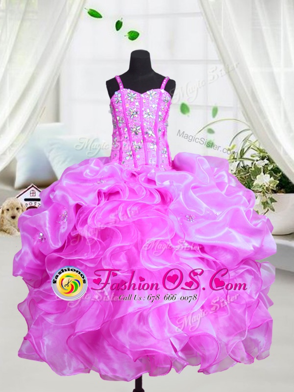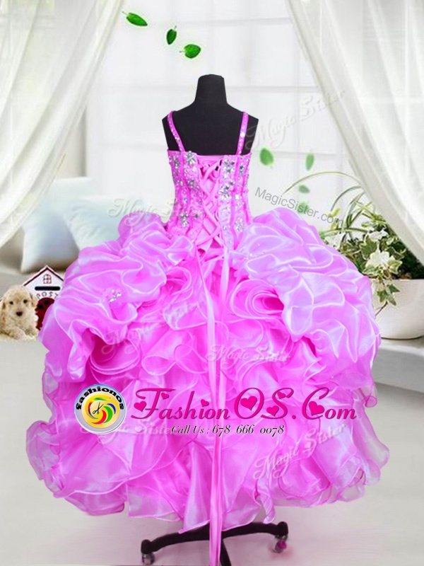 Home >  Special Occasion Dresses >  New Style Little Girl Pageant Dresses > Fashionable Floor Length Lace Up Girls Pageant Dresses Purple and In for Party and Wedding Party with Beading and Ruffles