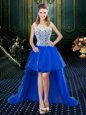 Home >  Quinceanera Dresses >  Detachable Quinceanera Skirts > Fashionable Four Piece Royal Blue Tulle Zipper Vestidos de Quinceanera Sleeveless Floor Length Brush Train Lace