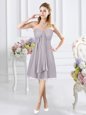 Fashionable Grey A-line Sweetheart Sleeveless Chiffon Knee Length Side Zipper Ruching Bridesmaid Gown
