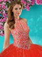 Fashionable Halter Top Rainbow 15 Quinceanera Dress with Beading and Appliques